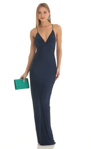 Chic Navy Blue Spaghetti - Strap Prom Dress with Plunging V - Neck Bodycon Design A Stylish Choice for Memorable - US 2 / UK 8 / EU 32