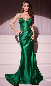 Elegant Emerald Green Satin Mermaid Gown with Spaghetti Straps Corset Top and Side Draping Ideal for Prom Black Tie Events - Emerald / US 2 / UK 8 / EU 32