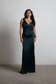 Elegant Emerald Mermaid Plunging V-Neck Tie-Shoulder Satin Back Zip Floor-Length Prom Dresses - US 2 / UK 8 / EU 32