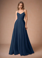 Elegant Navy Blue Chiffon Prom Dress with Spaghetti Straps Sweetheart Neckline and Flowy A - Line Skirt for Forma - US 2 / UK 8 / EU 32
