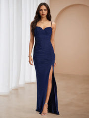 Elegant Plum Glitter Gown Off - Shoulder Ruched Design Figure - Hugging Fit for Memorable Evenings - US 2 / UK 8 / EU 32