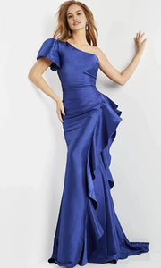 Elegant Royal Blue Satin One Shoulder Prom Dresses with Ruffled Detailing and Mermaid Silhouette for Formal Occasions