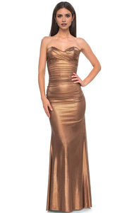 Elegant Strapless Bronze Toned Mermaid Prom Dress with Ruched Bodice for Formal Evening Galas - US 2 / UK 8 / EU 32