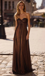 Elegant Strapless Brown Shimmering Chiffon Prom Gown with Ruched Sweetheart Neckline for Formal Evening Events - US 2 / UK 8 / EU 32