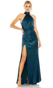 Elegant Teal Satin Halter Neck Prom Dresses with Ruched Detailing and High Side Slit for Formal Occasions - US 2 / UK 8 / EU 32