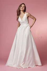 Elegant White Satin Prom Dress with Deep V Neck Open Back and Pocket Details for Timeless Glamour - US 2 / UK 8 / EU 32