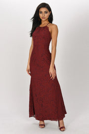 Charming Wine Mermaid Halter Neck Sleeveless Lace Crisscross Back Ankle-Length Prom Dresses - US 2 / UK 8 / EU 32