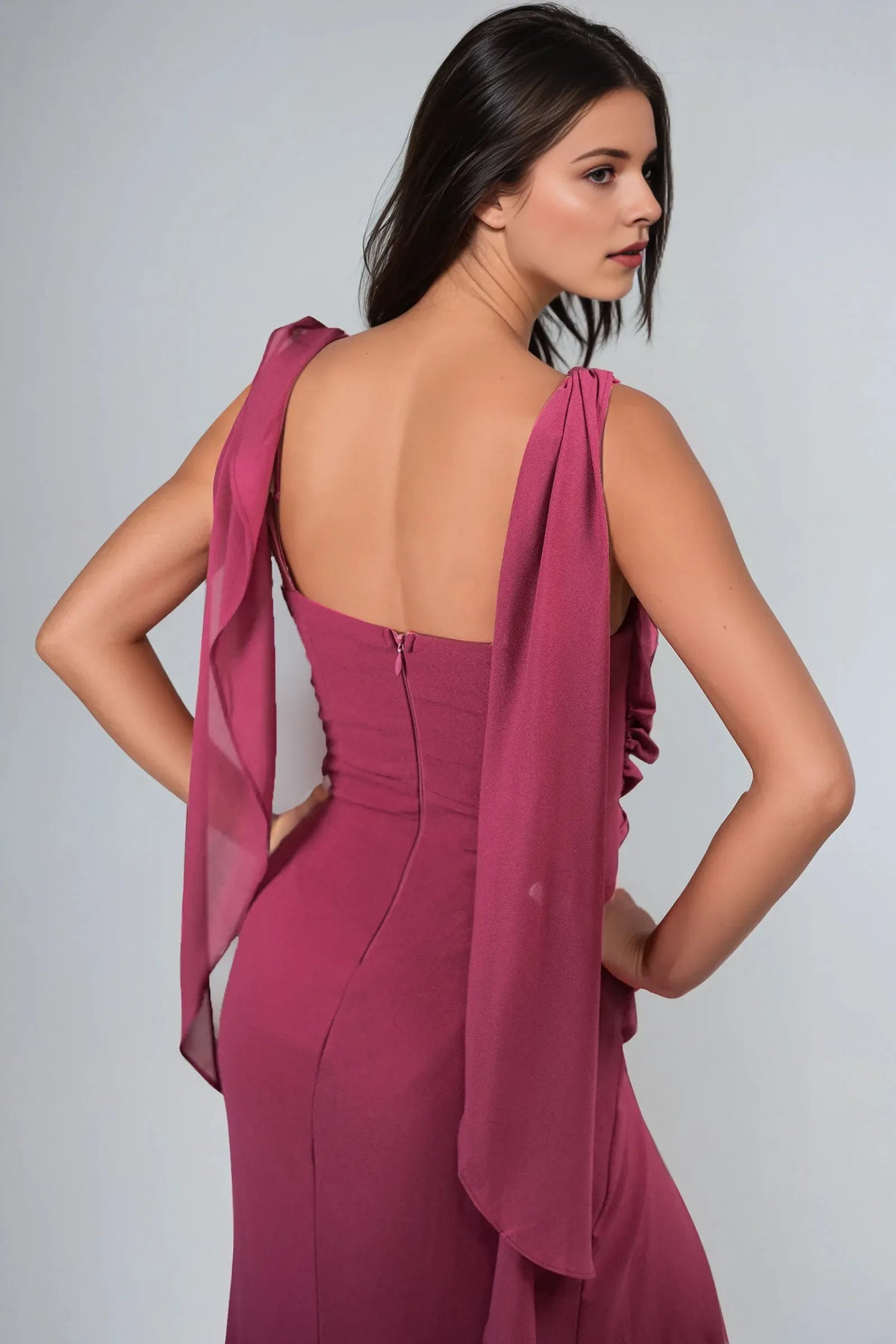Fashionable Chiffon Mermaid Cowl Neck Draped-Shoulder Back Zip High-Slit Floor-Length Prom Dresses for women Hot Sale