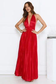 Fashionable Sheath Plunging Halter V-Neck Sleeveless Pleated Satin Open Back Ankle-Length Prom Dresses Hot Sale - Red / US 2 / UK 8 / EU 32