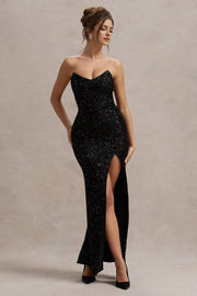 Glamorous Black Strapless Sequin Mermaid Prom Dresses with High Thigh Slit A Sparkling Masterpiece