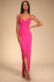 Glamorous Fuchsia Spaghetti Strap Wrap Front Prom Dresses with Side Slit Perfect for Proms Balls and Formal Occasions - US 2 / UK 8 / EU 32