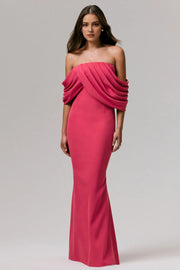 Glamorous Fuchsia Strapless Prom Dress with Draped Off Shoulder Accents for Black Tie Occasions