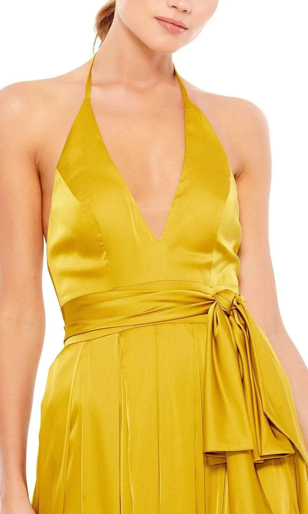 Glamorous Hot Pink Halter Neck Prom Dress with Deep V Neck Waist Tie High Side Slit deal for Formal Evening Occasions - Magenta / US 2 / UK 8 / EU 32