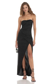 Glamorous Strapless Black Sparkle Prom Dress with Asymmetric Draped Bodice High Thigh Slit and Figure Hugging Silhouette for Evening Galas and Formal Celebrations