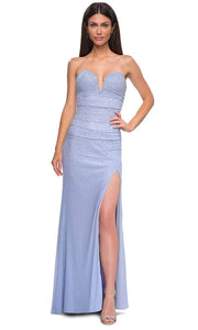 Glamorous Strapless Light Blue Rhinestone - Embellished Mermaid Prom Dress with High Side Slit – Ideal for Luxury Ballroom Events and Foreign Trade Galas - Light Periwinkle / US 2 / UK 8 / EU 32