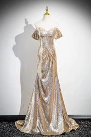 Gold Sequins Long Prom Dress Shiny Off the Shoulder Backless Evening Party Dress - US 2 / UK 8 / EU 32