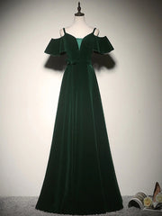 Green A-Line Velvet Long Prom Dresses Green Formal Evening Dress