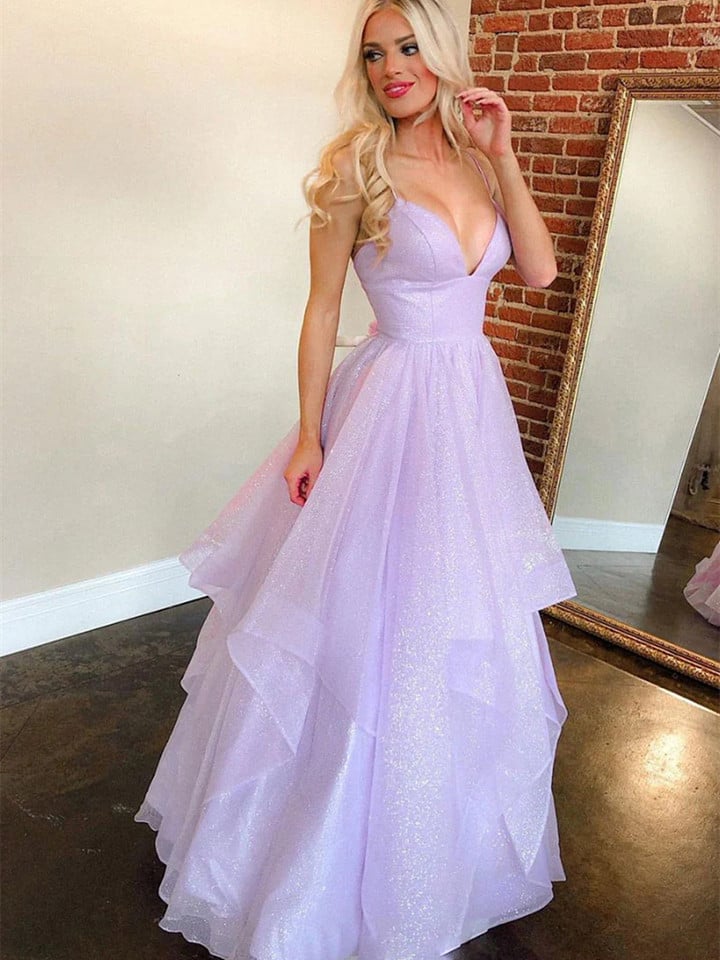Light Purple Tulle V-neckline Straps Party DressLight Purple Tulle Prom Dress