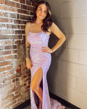 Lilac sequin mermaid long slit dance dress - US 2 / UK 8 / EU 32