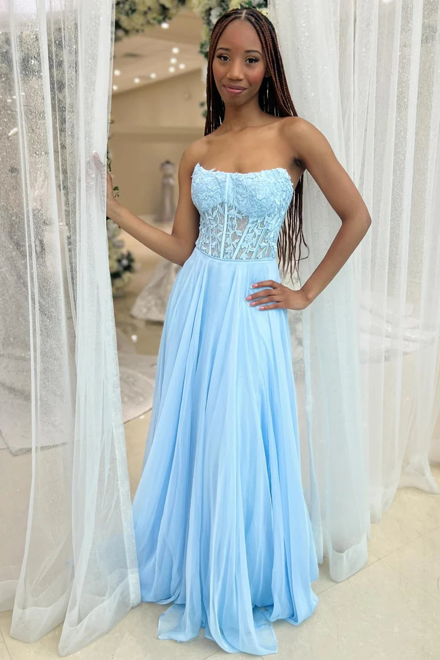 Magenta Chiffon Appliques Strapless A-Line Long Prom Dress - Magenta / US 2 / UK 8 / EU 32