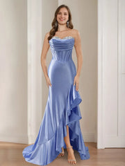 Mermaid Sparkly Sweetheart Ruched Asymmetrical Prom Dresses with Ruffles Lace-up