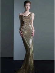 Mermaid / Trumpet Quinceanera Dresses Prom Dress Wedding Guest Floor Length Sleeveless Cowl Neck Polyester Backless - US 2 / UK 8 / EU 32