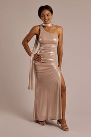 Metallic One-Shoulder prom-dresses with Neck Scarf