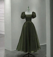 Green long chiffon square neck A-line ball gown