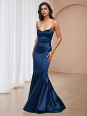 Step into timeless elegance with this navy blue satin mermaid prom dress. The rhinestone - embellished straps add a touch of luxury, while the mermaid silhouette hugs your curves in all the right ways. Crafted from smooth satin fabric, it drapes beautifully to create a sophisticated and glamorous look. Perfect for black - tie galas or formal dances, this dress ensures you make a memorable entrance and exude grace and refinement throughout the event.