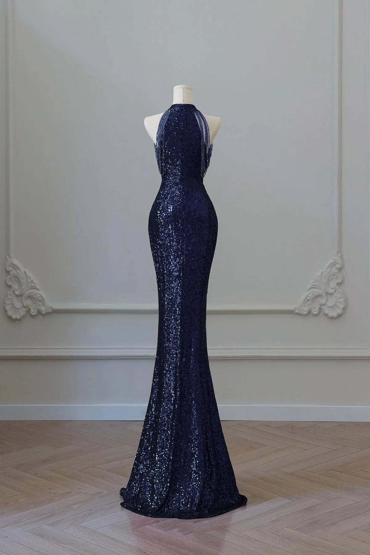 Navy Sequins Long Mermaid Prom Dress Elegant Off the Shoulder Party Dress - US 2 / UK 8 / EU 32