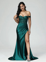 Off The Shoulder Sleeveless Prom Dress With Slit