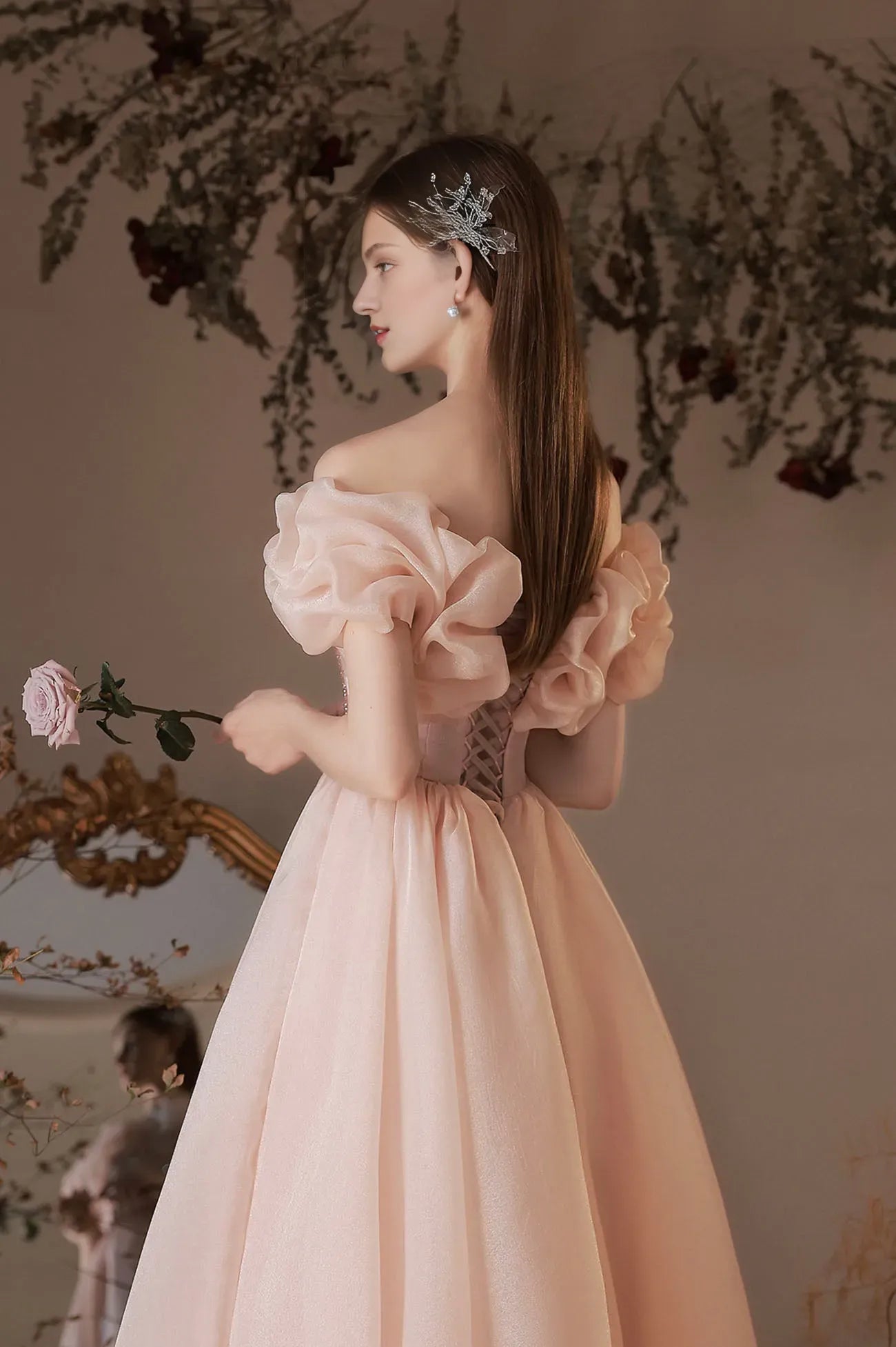 Pink Tulle Beaded Short A-Line Prom Dress Off the Shoulder Homecoming Dress