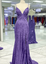 Purple Sequins Mermaid Straps Long Formal DressMermaid Sequins Prom Dress - US 2 / UK 8 / EU 32