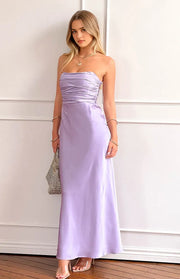 Romantic Lavender Satin Prom Dress Strapless Ruched Bodice Flowy Maxi Fit for a Dreamy Appeal - US 2 / UK 8 / EU 32