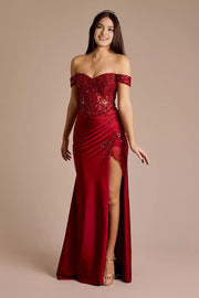 Sequin Applique Satin Off-Shoulder prom-dresses