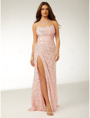 Sheath / Column Prom Dresses Beach Wedding Elegant Dress Formal Prom Floor Length Sleeveless Strapless Sequined with Glitter Sequin