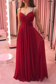 Simple burgundy chiffon long prom dress burgundy evening dress