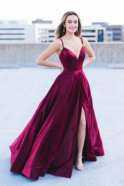 Simple burgundy satin long prom dress burgundy formal dress - US 2 / UK 8 / EU 32