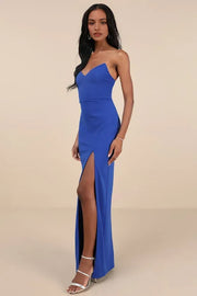 Sophisticated Strapless Prom Dress in Royal Blue with Sweetheart Neckline Bodycon Fit and High Slit Skirt for Formal Events