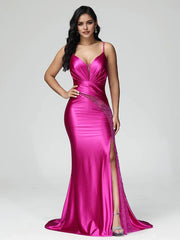 Spaghetti Straps Lace Up Mermaid Prom Dress With Slit