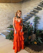 Spaghetti Straps Layer Long Prom Dress Birthday Dress