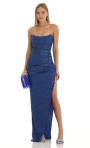Sparkling Blue Sequin Prom Dresses Straples Bodycon Fit High Thigh Slit Perfect for a Glitzy Prom Soirée - US 2 / UK 8 / EU 32