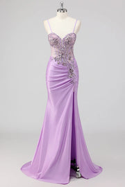 Sparkly Purple Mermaid Corset Sequin Long Prom Dress