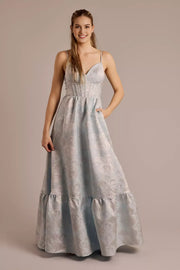 V-neck slim shoulder strap metal satin tight corset ball jersey - US 2 / UK 8 / EU 32