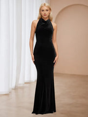 Velvet Cold Shoulder Trumpet/Mermaid Prom Dresses - Black / US 2 / UK 8 / EU 32