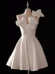 White A-line spaghetti strap satin short prom dress white bridesmaid dress