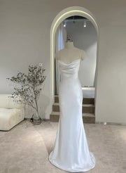 White Mermaid Soft Satin Long Evening DressWhite Long Wedding Party Dress - US 2 / UK 8 / EU 32