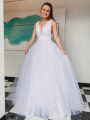 White v neck tulle long prom dress white tulle formal dress - US 2 / UK 8 / EU 32