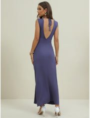 Women's Black Dress Prom Dress Party Dress Ruched Backless V Neck Sleeveless Formal Winter Dress Navy Blue Spring Fall