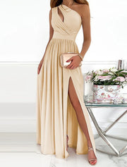 Women's long dress, long dress, long dress, dance dress, party dress, swing dress, emerald green dress, elegant party, romantic vacation party, wedding guests, slim fit, solid color, sleeveless, single shoulder, black and white - Beige / US 2 / UK 8 / EU 32
